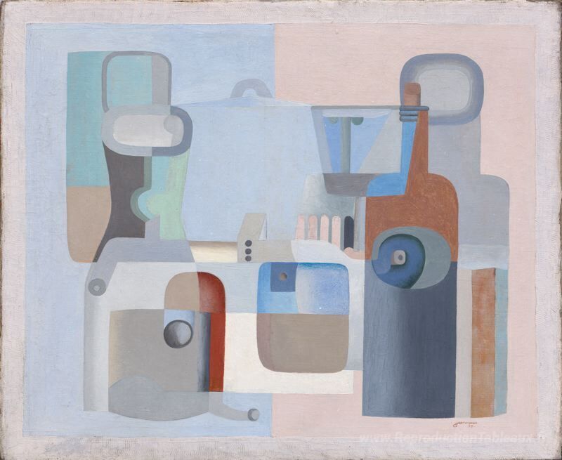 Nous vous proposons une reproduction artisanale sur toile du célèbre tableau 'Nature morte remplie d'espace' de Le Corbusier, provenant du Musée de la Reproduction.