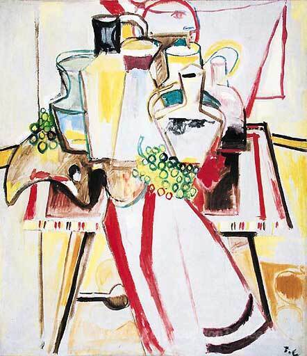 Nous vous proposons une reproduction artisanale sur toile du célèbre tableau 'Nature morte sur la table' de Pierre Tal-Coat, provenant du Musée de la Reproduction.