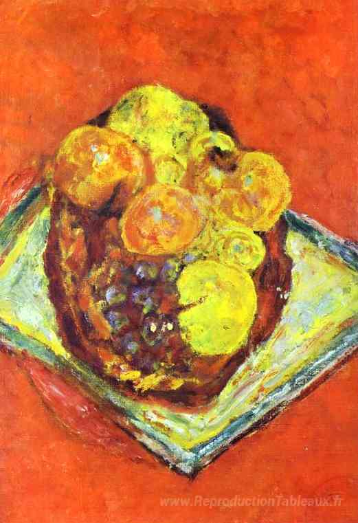 Nous vous proposons une reproduction artisanale sur toile du célèbre tableau 'Pêches et raisins' de Pierre Bonnard, provenant du Musée de la Reproduction.