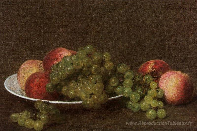 Nous vous proposons une reproduction artisanale sur toile du célèbre tableau 'Pêches et raisins' de Henri Fantin-Latour, provenant du Musée de la Reproduction.