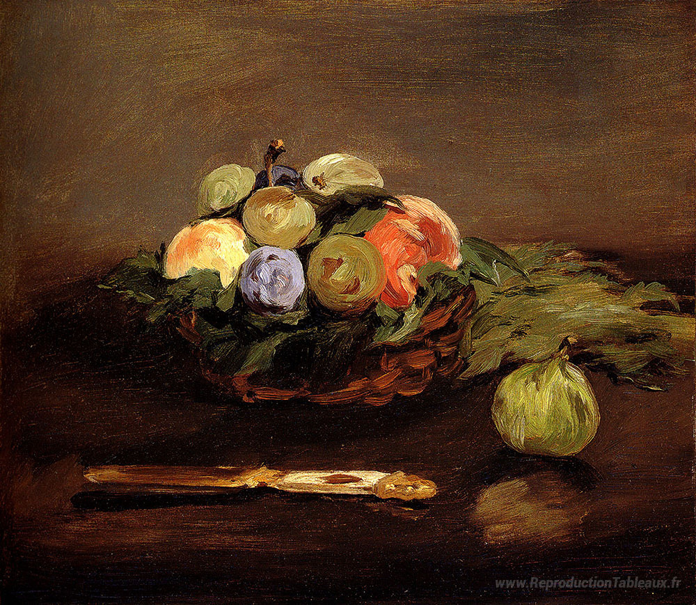 Nous vous proposons une reproduction artisanale sur toile du célèbre tableau 'Panier de fruits' de Edouard Manet, provenant du Musée de la Reproduction.