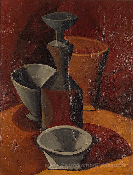 Nous vous proposons une reproduction artisanale sur toile du célèbre tableau 'Pichet et bols' de Pablo Picasso, provenant du Musée de la Reproduction.