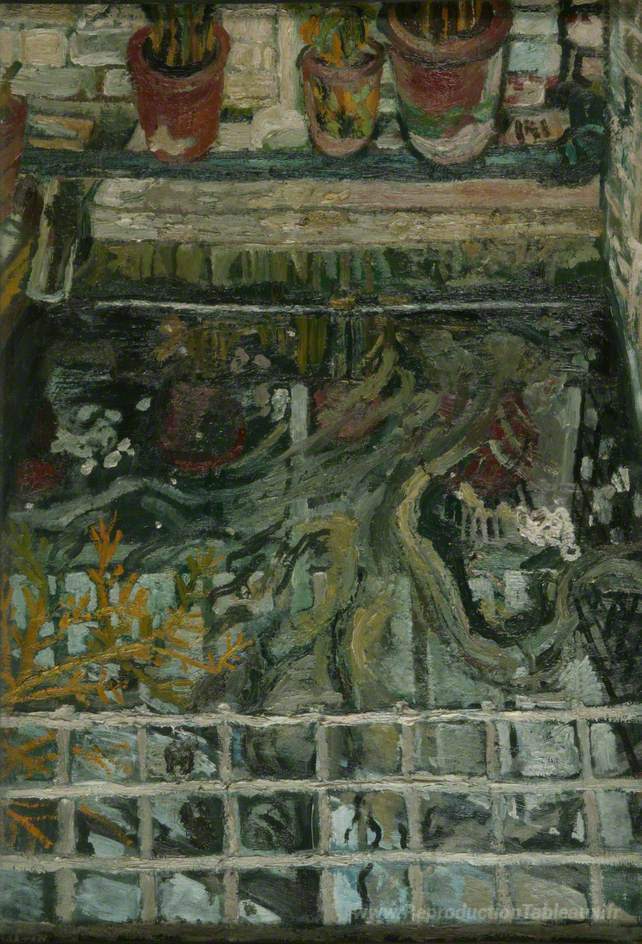 Nous vous proposons une reproduction artisanale sur toile du célèbre tableau 'Pots de fleurs dans une serre' de John Bratby, provenant du Musée de la Reproduction.