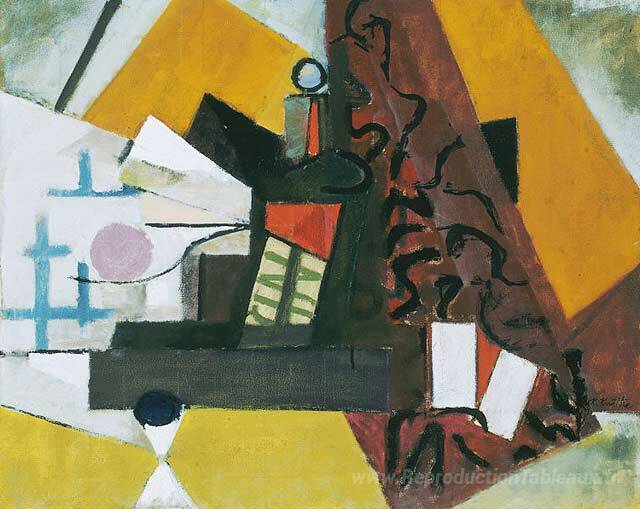 Nous vous proposons une reproduction artisanale sur toile du célèbre tableau 'Quin-zin' de Karl Knaths, provenant du Musée de la Reproduction.