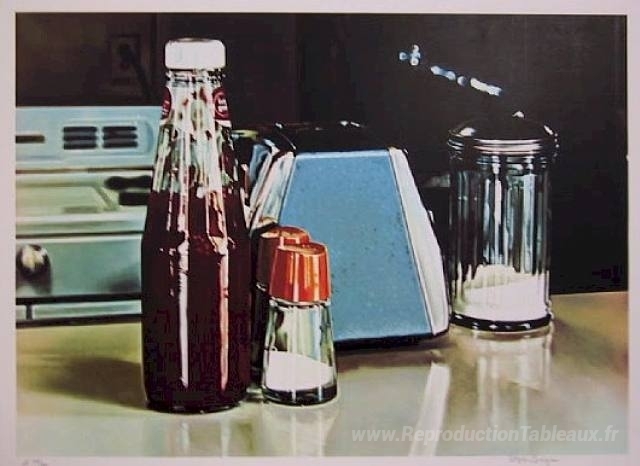 Nous vous proposons une reproduction artisanale sur toile du célèbre tableau 'Support de serviette bleue' de Ralph Goings, provenant du Musée de la Reproduction.