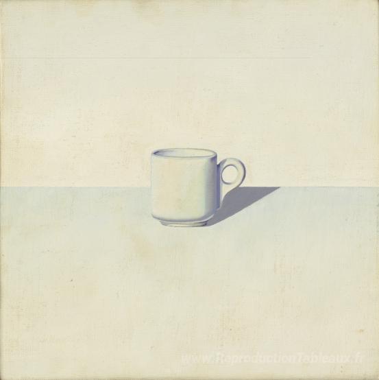 Nous vous proposons une reproduction artisanale sur toile du célèbre tableau 'Tasse de peinture' de Dale Hickey, provenant du Musée de la Reproduction.