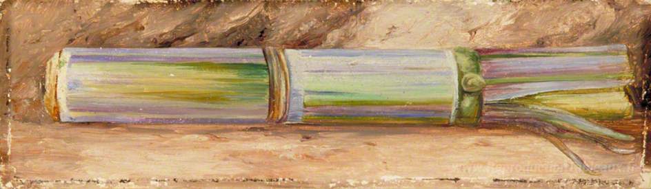 Nous vous proposons une reproduction artisanale sur toile du célèbre tableau 'Un morceau de canne à sucre' de Marianne North, provenant du Musée de la Reproduction.