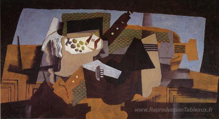 Nous vous proposons une reproduction artisanale sur toile du célèbre tableau 'Un piédestal noir' de Georges Braque, provenant du Musée de la Reproduction.
