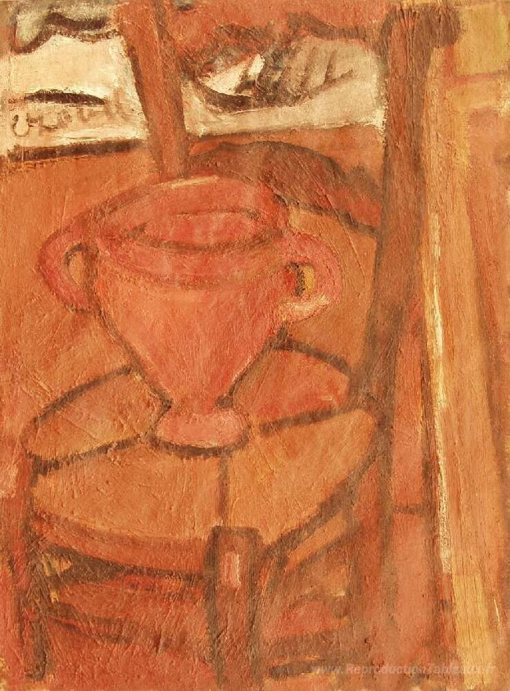 Nous vous proposons une reproduction artisanale sur toile du célèbre tableau 'Vase sur une chaise (pot italien)' de Bela Czobel, provenant du Musée de la Reproduction.