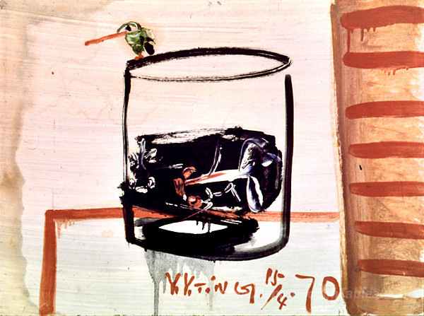 Nous vous proposons une reproduction artisanale sur toile du célèbre tableau 'Verre, poisson doré et oiseau' de Ding Yanyong, provenant du Musée de la Reproduction.