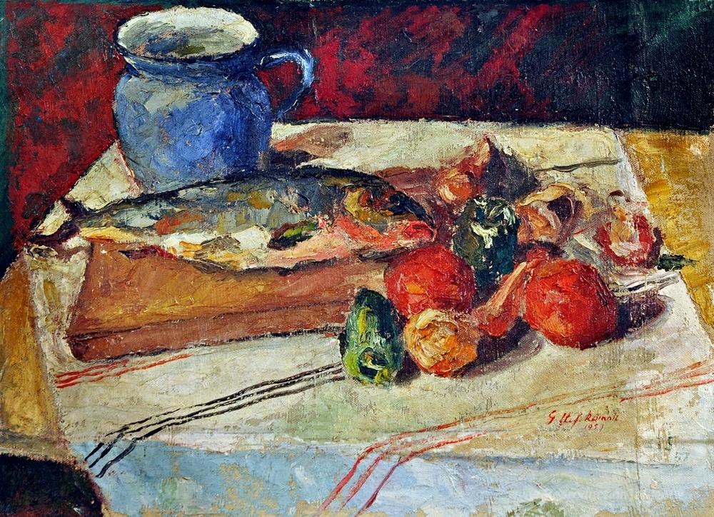 Nous vous proposons une reproduction artisanale sur toile du célèbre tableau 'Vie morte avec du poisson' de George Stefanescu-Ramnic , provenant du Musée de la Reproduction.