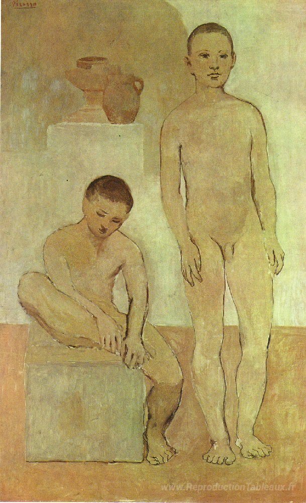 Nous vous proposons une reproduction artisanale sur toile du célèbre tableau 'Adolescents' de Pablo Picasso, provenant du Musée de la Reproduction.