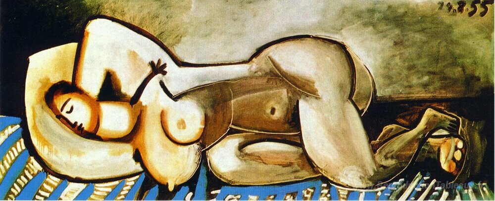 Nous vous proposons une reproduction artisanale sur toile du célèbre tableau 'Allongé de femme nue' de Pablo Picasso, provenant du Musée de la Reproduction.