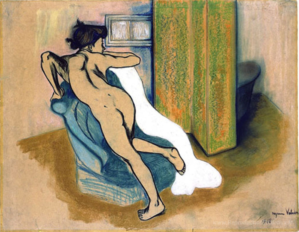 Nous vous proposons une reproduction artisanale sur toile du célèbre tableau 'Après le bain' de Suzanne Valadon, provenant du Musée de la Reproduction.