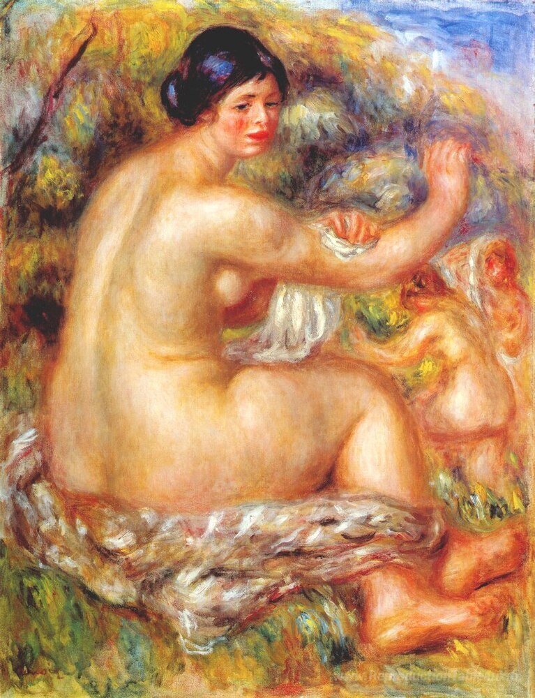 Nous vous proposons une reproduction artisanale sur toile du célèbre tableau 'Après le bain' de Pierre-Auguste Renoir, provenant du Musée de la Reproduction.