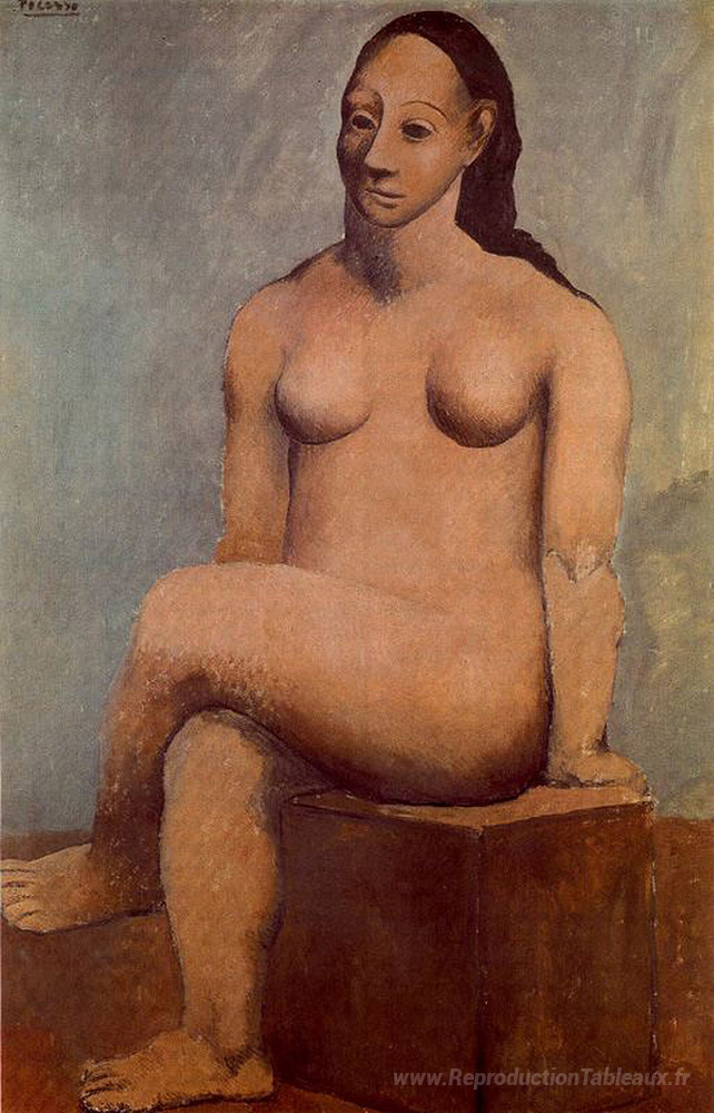 Nous vous proposons une reproduction artisanale sur toile du célèbre tableau 'Assis nu avec les jambes croisées' de Pablo Picasso, provenant du Musée de la Reproduction.