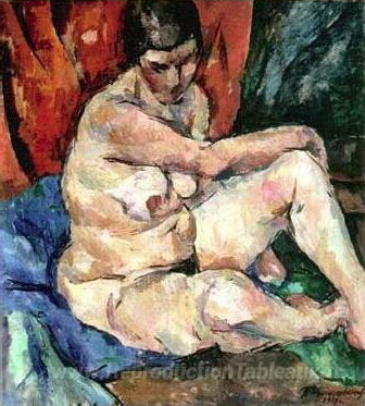 Nous vous proposons une reproduction artisanale sur toile du célèbre tableau 'Assis nu' de Pyotr Konchalovsky, provenant du Musée de la Reproduction.