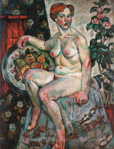 Nous vous proposons une reproduction artisanale sur toile du célèbre tableau 'Assis nu' de Ilya Mashkov, provenant du Musée de la Reproduction.
