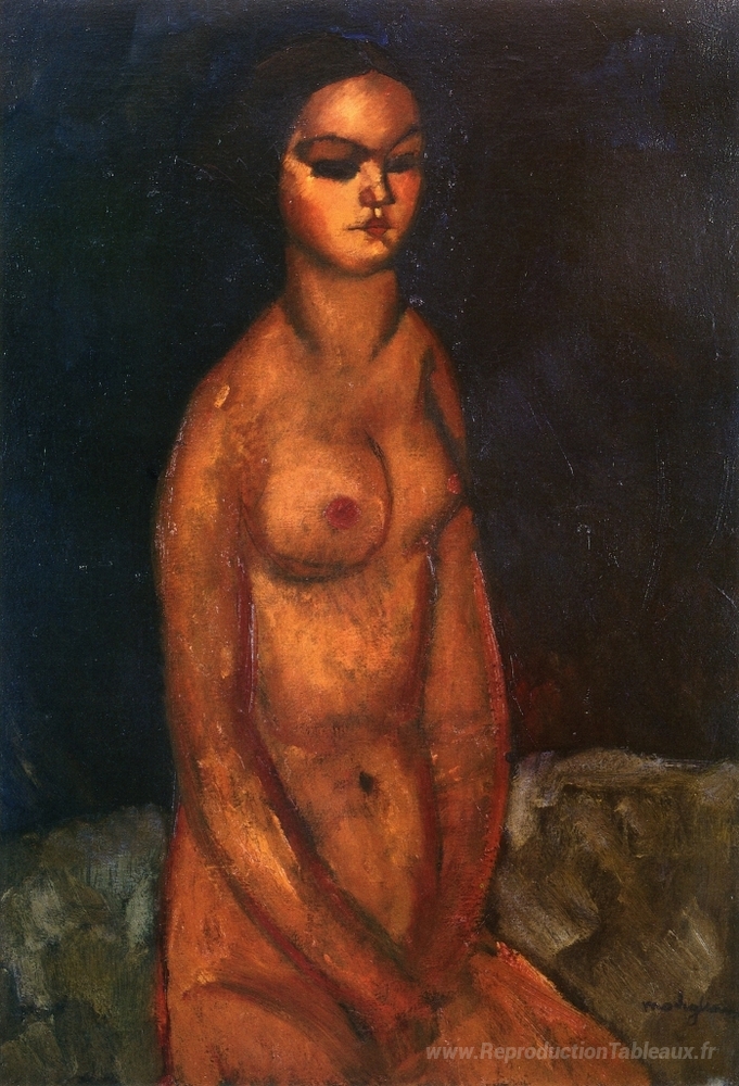 Nous vous proposons une reproduction artisanale sur toile du célèbre tableau 'Assis nu' de Amedeo Modigliani, provenant du Musée de la Reproduction.