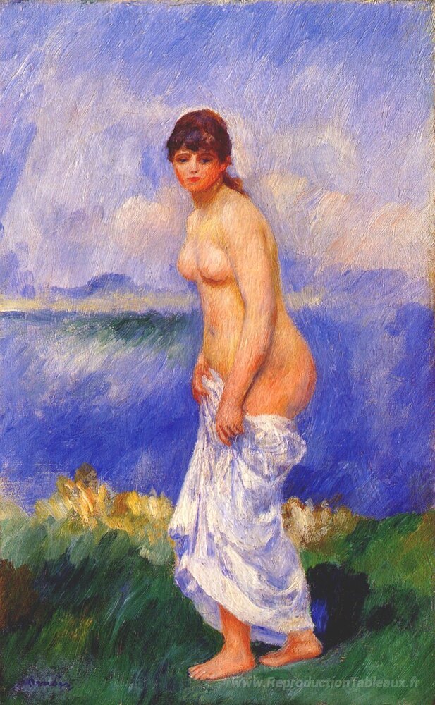 Nous vous proposons une reproduction artisanale sur toile du célèbre tableau 'Baigneur debout' de Pierre-Auguste Renoir, provenant du Musée de la Reproduction.