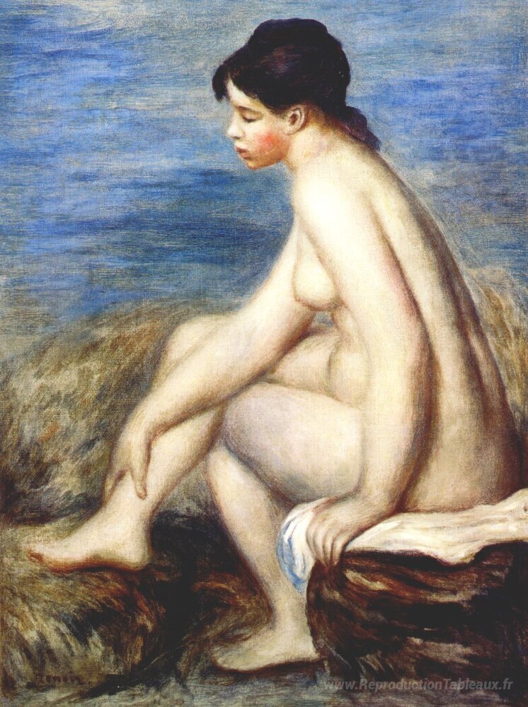 Nous vous proposons une reproduction artisanale sur toile du célèbre tableau 'Baigneur' de Pierre-Auguste Renoir, provenant du Musée de la Reproduction.