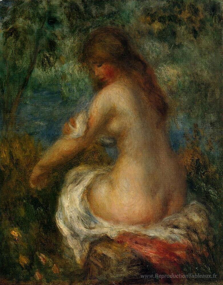 Nous vous proposons une reproduction artisanale sur toile du célèbre tableau 'Baigneur' de Pierre-Auguste Renoir, provenant du Musée de la Reproduction.
