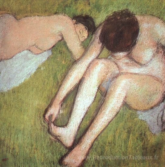 Nous vous proposons une reproduction artisanale sur toile du célèbre tableau 'Baigneurs sur l'herbe' de Edgar Degas, provenant du Musée de la Reproduction.