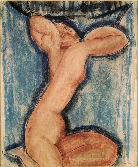 Nous vous proposons une reproduction artisanale sur toile du célèbre tableau 'Cariatide' de Amedeo Modigliani, provenant du Musée de la Reproduction.