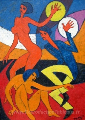 Nous vous proposons une reproduction artisanale sur toile du célèbre tableau 'Danseurs' de Endre Bartos, provenant du Musée de la Reproduction.
