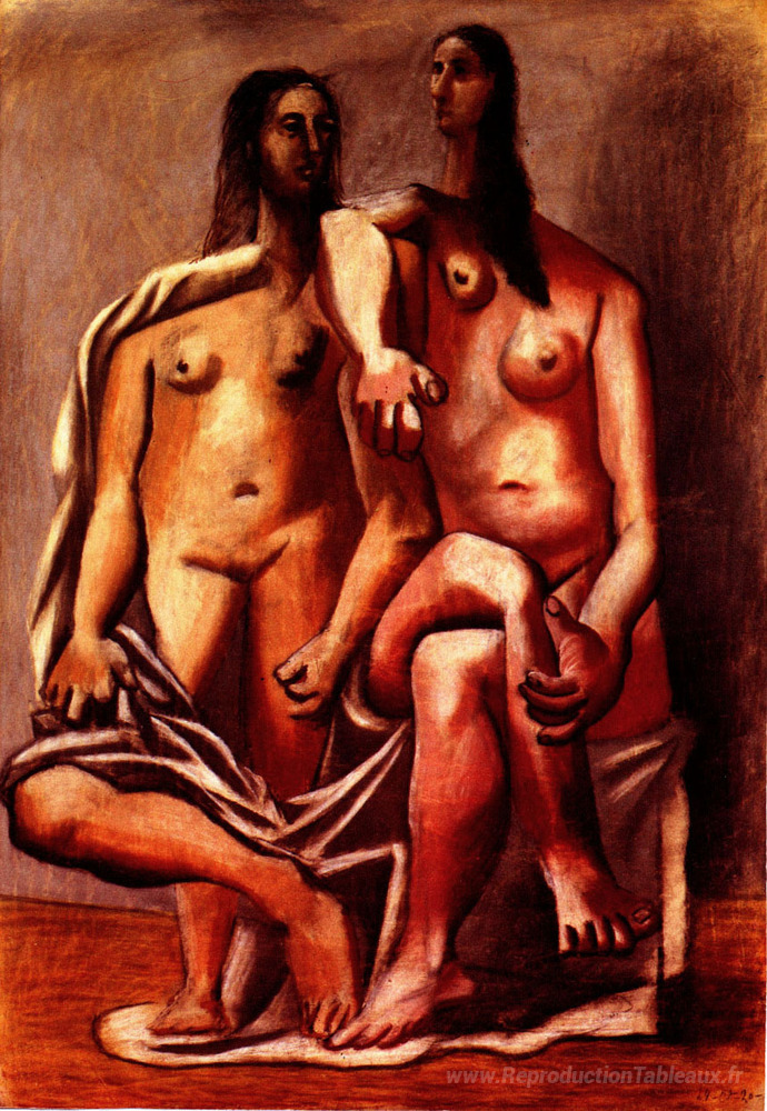 Nous vous proposons une reproduction artisanale sur toile du célèbre tableau 'Deux baigneurs' de Pablo Picasso, provenant du Musée de la Reproduction.