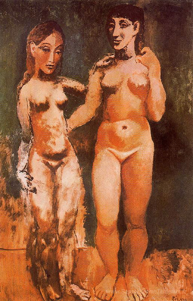 Nous vous proposons une reproduction artisanale sur toile du célèbre tableau 'Deux femmes nues' de Pablo Picasso, provenant du Musée de la Reproduction.
