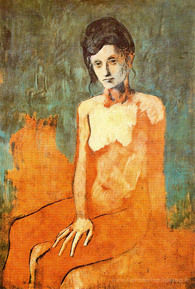 Nous vous proposons une reproduction artisanale sur toile du célèbre tableau 'Femme assise nue' de Pablo Picasso, provenant du Musée de la Reproduction.