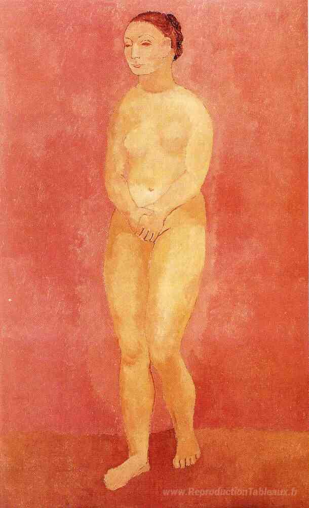 Nous vous proposons une reproduction artisanale sur toile du célèbre tableau 'Femme debout nue' de Pablo Picasso, provenant du Musée de la Reproduction.