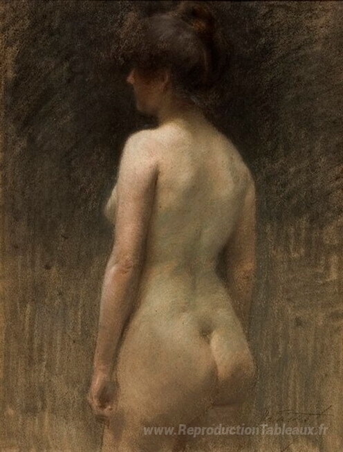 Nous vous proposons une reproduction artisanale sur toile du célèbre tableau 'Femme nue' de Paul Mathiopoulos, provenant du Musée de la Reproduction.