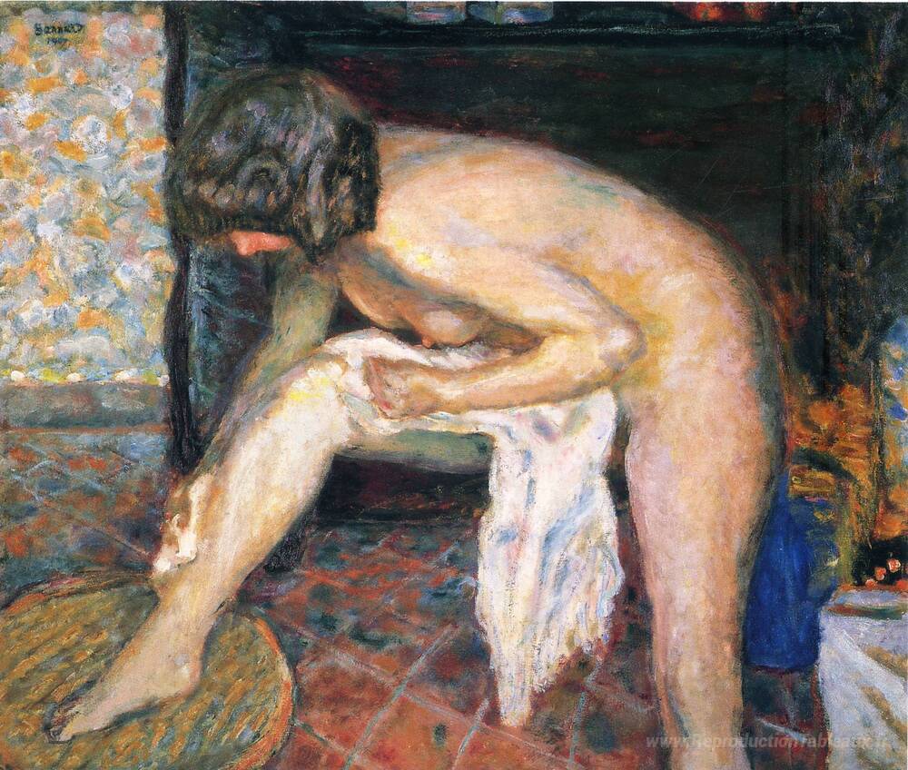 Nous vous proposons une reproduction artisanale sur toile du célèbre tableau 'Femme penchée' de Pierre Bonnard, provenant du Musée de la Reproduction.