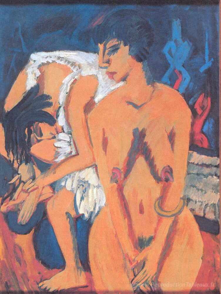 Nous vous proposons une reproduction artisanale sur toile du célèbre tableau 'Femmes' de Ernst Ludwig Kirchner, provenant du Musée de la Reproduction.