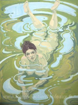 Nous vous proposons une reproduction artisanale sur toile du célèbre tableau 'Figure en eau' de Neil Welliver, provenant du Musée de la Reproduction.