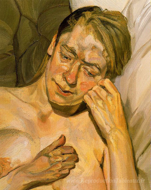 Nous vous proposons une reproduction artisanale sur toile du célèbre tableau 'Fille aux cheveux beaux' de Lucian Freud, provenant du Musée de la Reproduction.