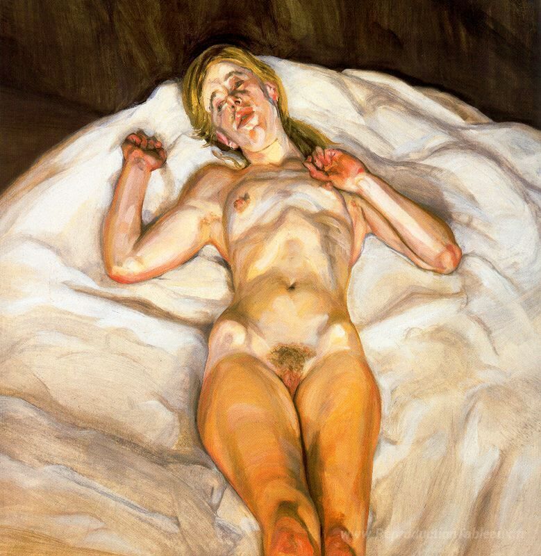 Nous vous proposons une reproduction artisanale sur toile du célèbre tableau 'Fille nue' de Lucian Freud, provenant du Musée de la Reproduction.