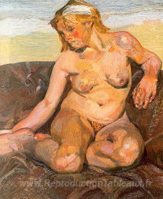Nous vous proposons une reproduction artisanale sur toile du célèbre tableau 'Fille tenant son pied' de Lucian Freud, provenant du Musée de la Reproduction.