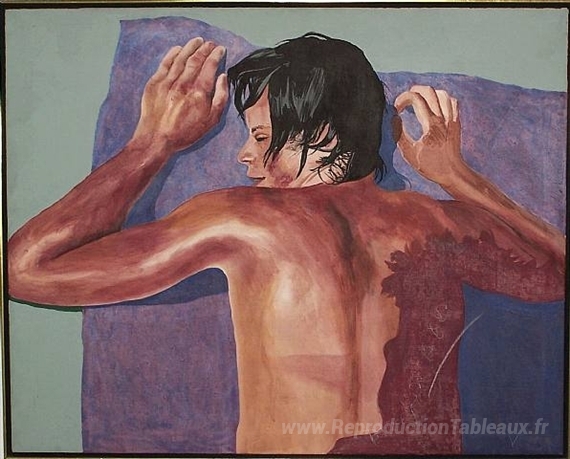 Nous vous proposons une reproduction artisanale sur toile du célèbre tableau 'Génaise' de Patrick Procktor, provenant du Musée de la Reproduction.