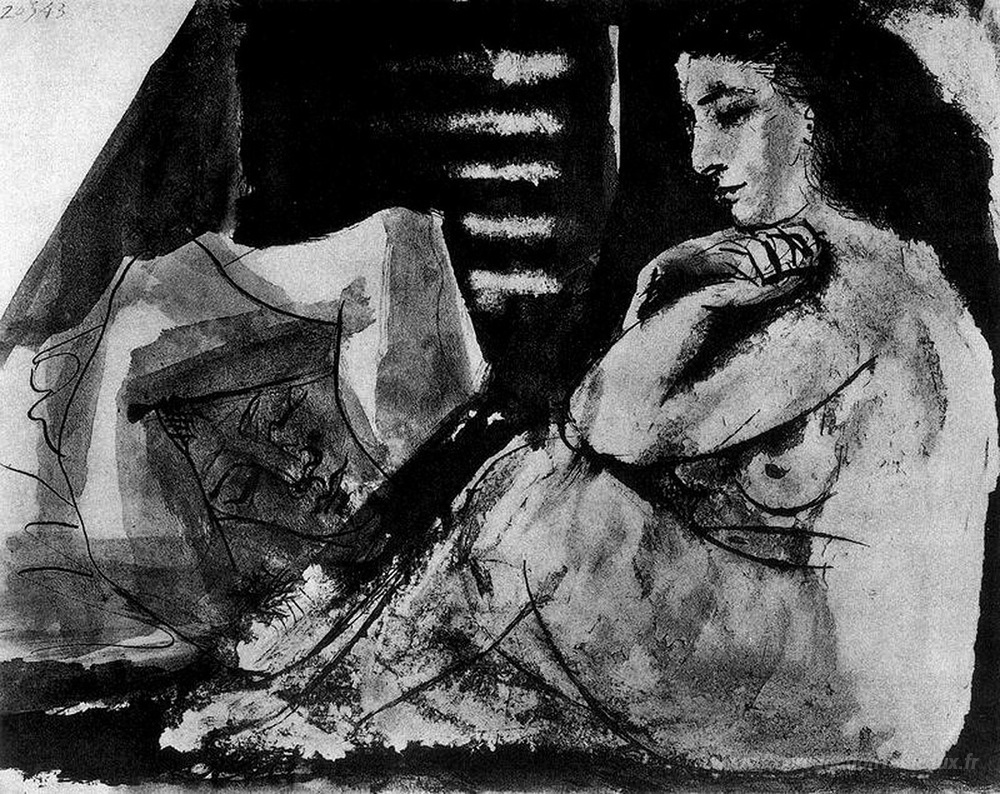 Nous vous proposons une reproduction artisanale sur toile du célèbre tableau 'Homme endormi et femme assise' de Pablo Picasso, provenant du Musée de la Reproduction.