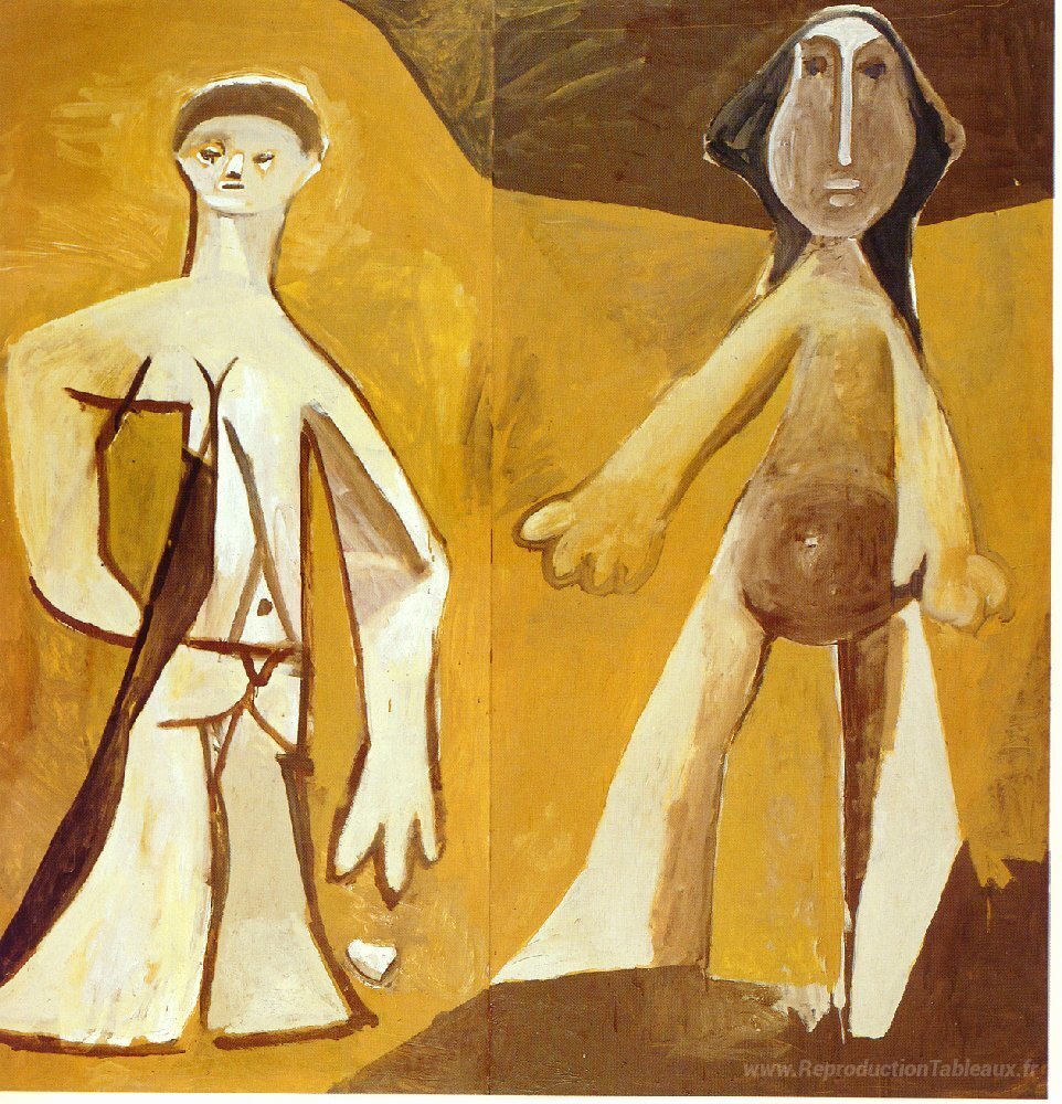 Nous vous proposons une reproduction artisanale sur toile du célèbre tableau 'Homme et femme' de Pablo Picasso, provenant du Musée de la Reproduction.