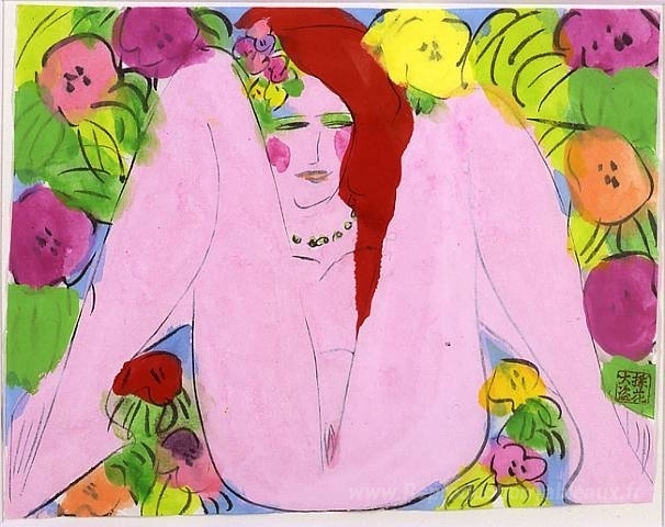 Nous vous proposons une reproduction artisanale sur toile du célèbre tableau 'Je vais tout montrer, alors viens bientôt' de Walasse Ting, provenant du Musée de la Reproduction.