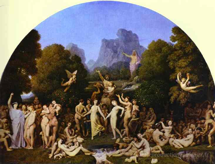 Nous vous proposons une reproduction artisanale sur toile du célèbre tableau 'L'age d'Or' de Jean Auguste Dominique Ingres, provenant du Musée de la Reproduction.