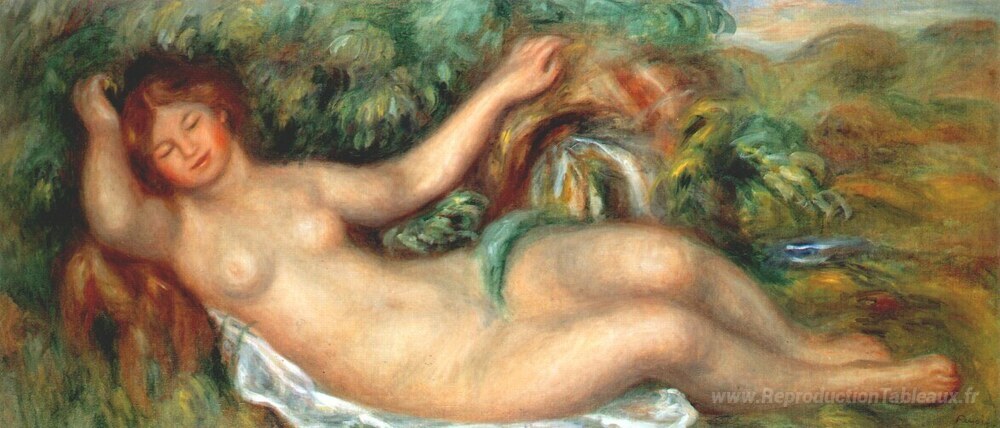 Nous vous proposons une reproduction artisanale sur toile du célèbre tableau 'Le printemps' de Pierre-Auguste Renoir, provenant du Musée de la Reproduction.