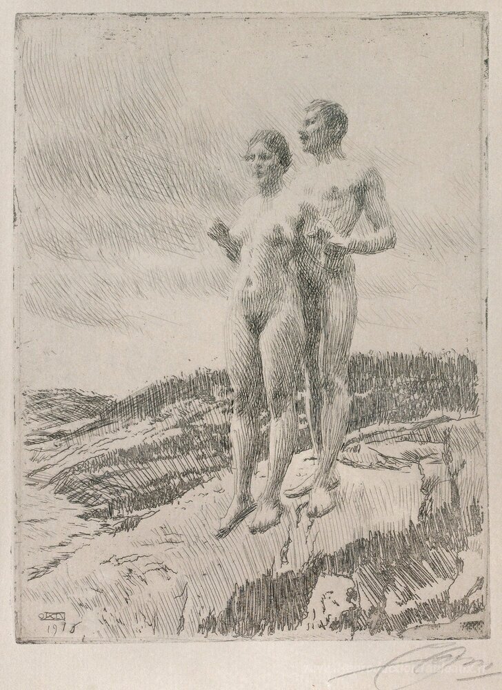 Nous vous proposons une reproduction artisanale sur toile du célèbre tableau 'Les deux' de Anders Zorn, provenant du Musée de la Reproduction.