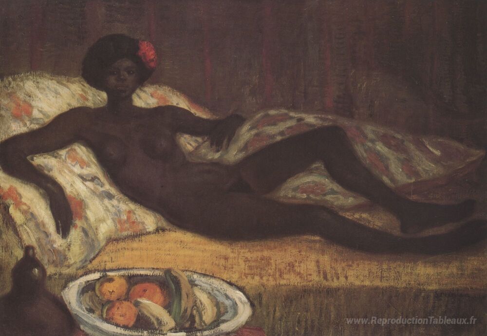 Nous vous proposons une reproduction artisanale sur toile du célèbre tableau 'Massaida sur le divan' de Theophile Steinlen, provenant du Musée de la Reproduction.