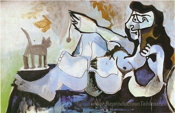 Nous vous proposons une reproduction artisanale sur toile du célèbre tableau 'Mentinement féminin nu jouant avec un chat' de Pablo Picasso, provenant du Musée de la Reproduction.