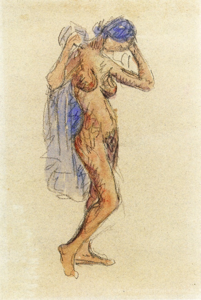 Nous vous proposons une reproduction artisanale sur toile du célèbre tableau 'Modèle nu avec draperie' de Maurice Prendergast, provenant du Musée de la Reproduction.